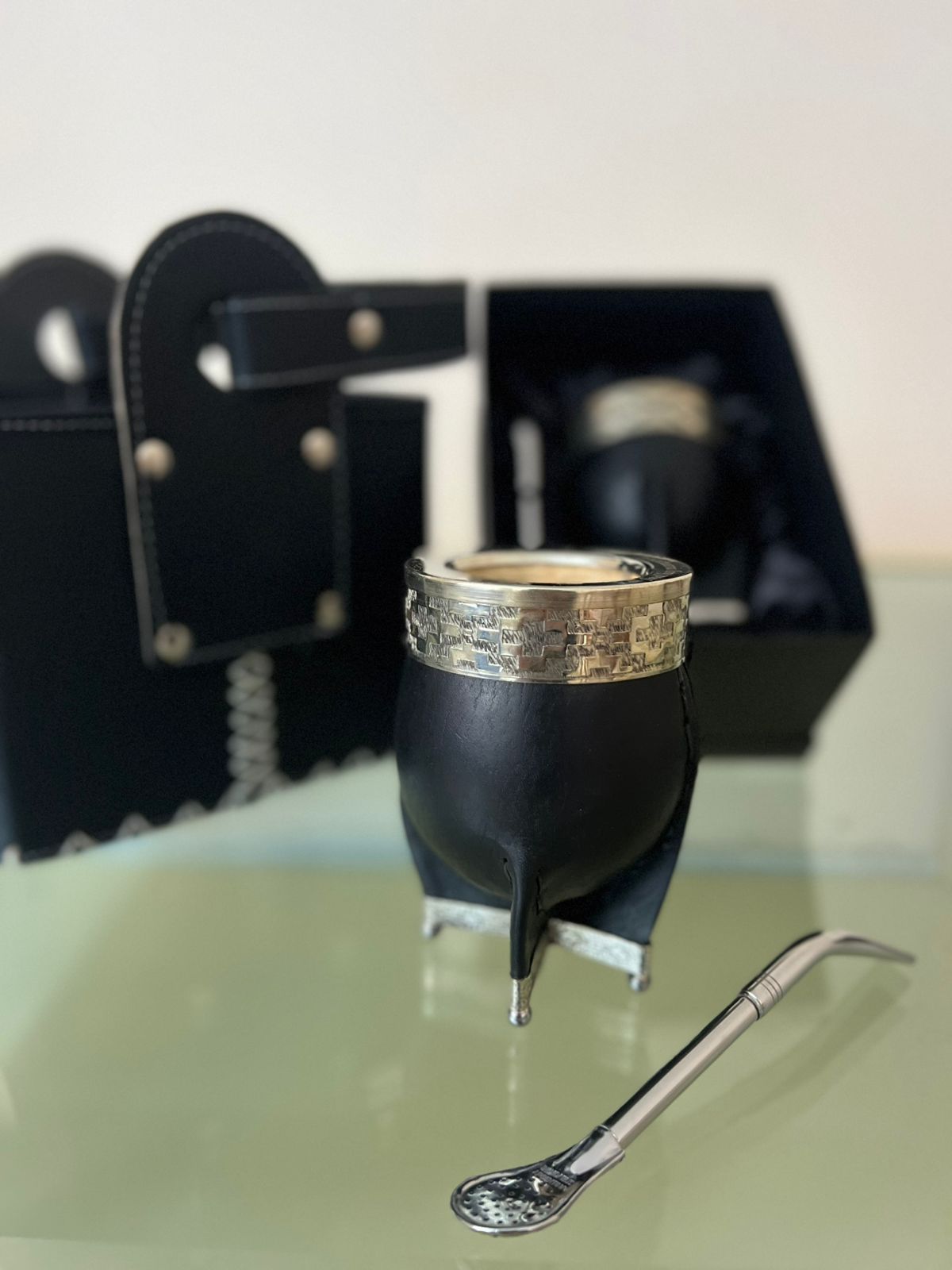 Mate Imperial Liso Negro Base De Alpaca + Bombilla De Acero